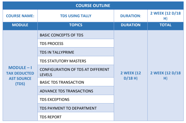 Foreign Currency, Generating TDS Challan (ITNS 281), TDS Reports – Form and e-filing Form 26Q, Form 27Q. As a Certified TDS Professional, you get an edge among your fellow competitors in the job market.