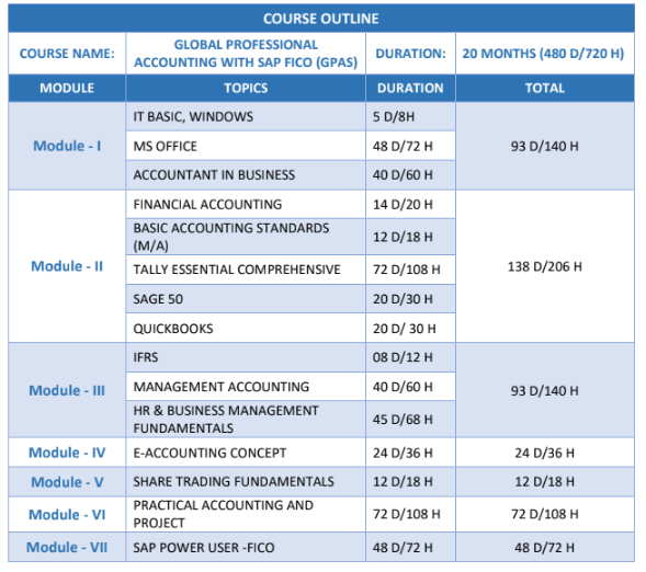 Global Professional accounting is a program which has industry relevant and most sorted out components to equip you to be a truly professional accountant. From basic IT and Manual Accounting, from Indian Accounting Software to Foreign Accounting software, from e-money to Share trading fundamentals it has a quiver of skill sets which makes you a truly unique and employed. The course is built with first 3 modules of ACCA which paves way for career progression to ACCA qualification apart from globally renowned certification on International Financial Reporting Standards. Finally, SAP FICO (Power User) also added with this course. With this single qualification, you will be eligible to receive IAB (UK), SAP, ACCA (UK), Tally Education certifications along with G-TEC Global Certification.