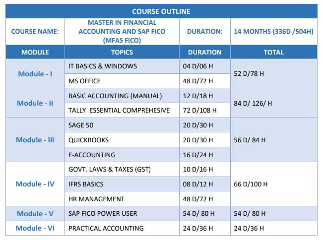 MFAS is the only course which blends richness of Conventional subjects of Accounting like Manual and Computerized Accounting with most modern Accounting updates and standards like IFRS, GST, SAP Accounting, Men and Material Management to make you a true Global Professional Accountant. One month exclusive practical training in real life Accounting scenario and its unique International Certifications like IAB (UK) and SAP FICO Power User module make MFAS the No.1 Accounting Course for any candidates aspiring a bright future in Commerce Industry.