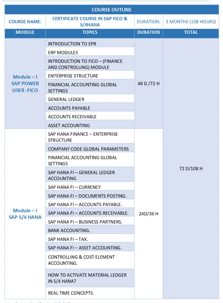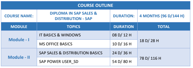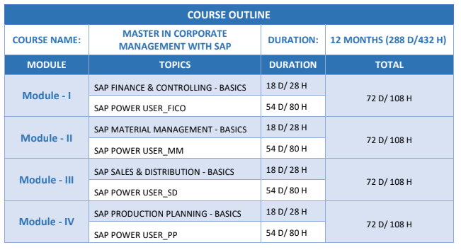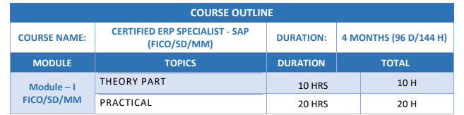 of any firm irrespective of industry. To make you a complete fit candidate, we have tailored it to include fundamentals of Production Planning, Material Management, Sales and Distribution and Finance and Control and packaged it with the most colorful qualification- SAP MM, PP, SD and FICO. What more would anyone need.