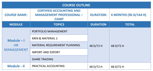 The course is tailored for those who want to upgrade their skill set and perform as a successful Accountant or even a Finance Manager. The module covers Practical Accounting and Management of Men, Material and Portfolio and also covers the very essentials of Share Trading and Financial laws.