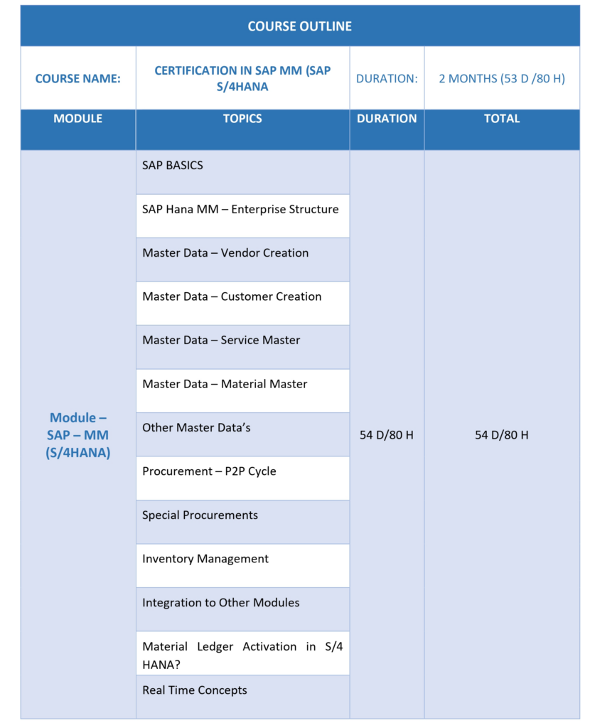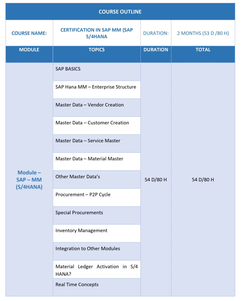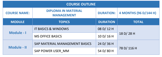 Seeking a promising career in Material Management domain? You are in the RIGHT place. Build your expertise Material Management in the world’s No.1 ERP solution which rules the Business world irrespective of any industries globally. Diploma in SAP Material Management will equip the students to work extensively on SAP ERP’s MM modules once the fundamentals of the domain is covered.
