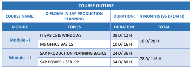 Seeking a promising career in Production/Manufacturing industry? Build your expertise Production Planning in the world’s No.1 ERP solution which rules the Business world irrespective of any industries globally. Diploma in SAP Production Planning will equip the students to work extensively on SAP ERP’s PP modules once the fundamentals of the domain is covered.