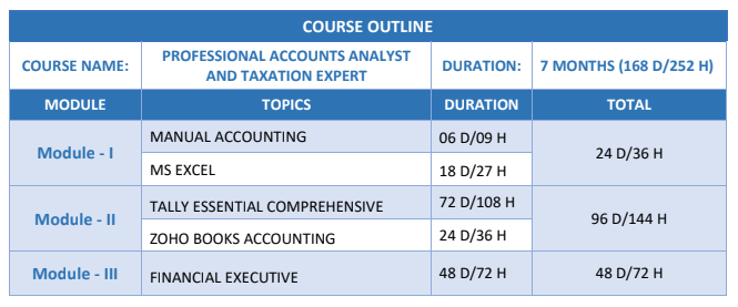 Professional Accounts Analyst and Taxation Expert course specialized on providing individuals with the knowledge and skills required to work in the fields of accounting, financial analysis, taxation and statutory filling. This course is designed for those who aspire to become proficient in financial analysis, accounting, and taxation practices. The course includes hands-on exercises and practical challenges; students gain proficiency in utilizing various accounting tools. The bundling of certifications like ABMA, TALLY and MEPSC along with G-TEC Certification makes the course a globally recognized to be a catalyst for prospective career.”Professional Finance, Tax & Statutory filing Accountant”.