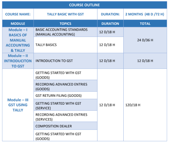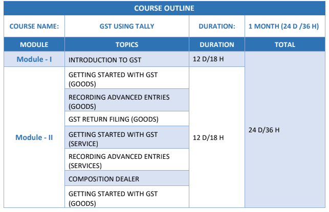 The course is specially tailored to impart the students with the knowledge in taxing systems in India from over a decade to the latest GST and gives a thorough basic knowledge in Goods and Services Tax.